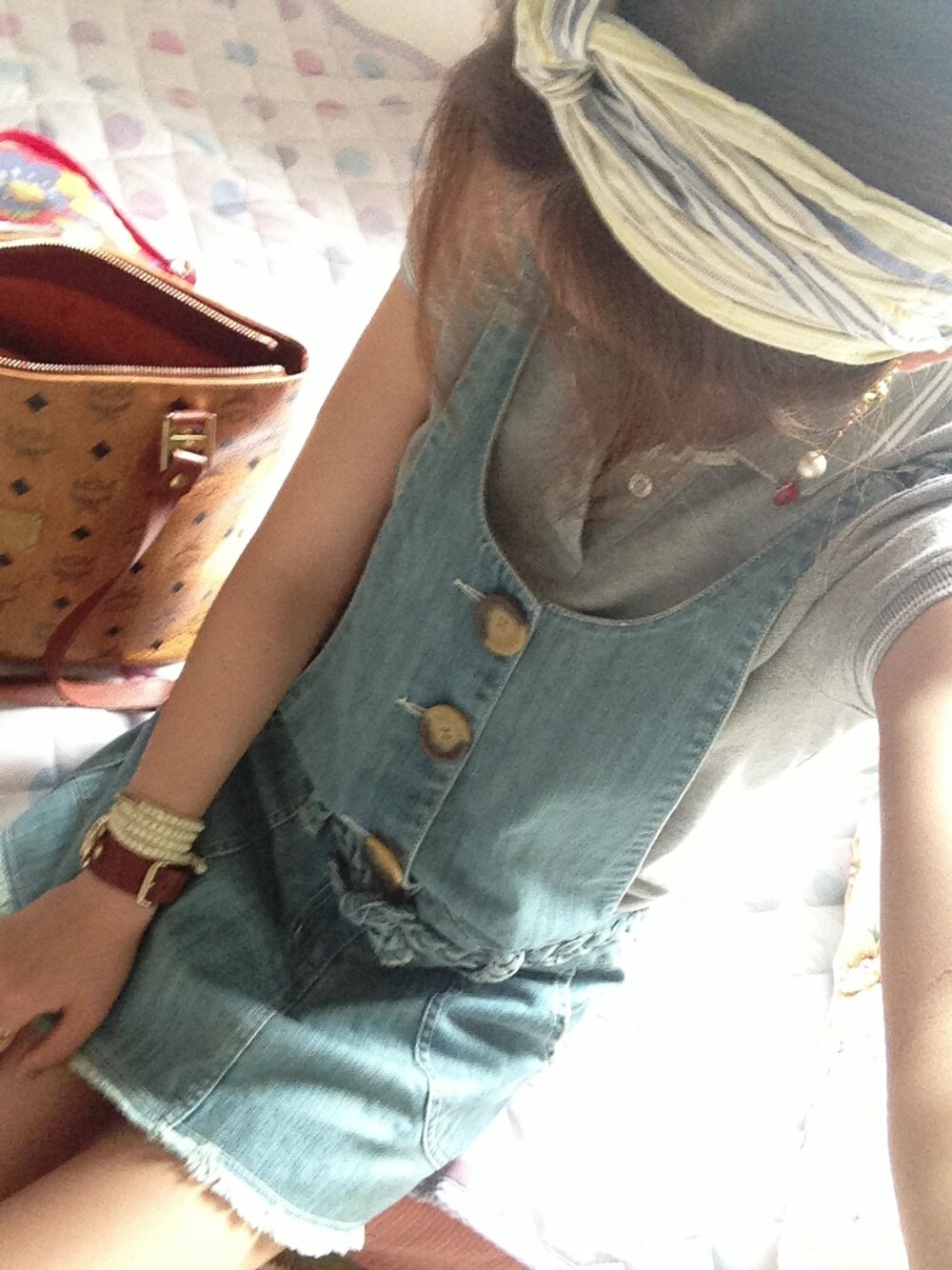 サロペット&ポロシャツ 古着 ターバン&イヤリング 手作り バッグ MCM スニーカー ナイキ プチプラコーデ( ´ ▽ ` )ノ