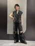 ノースリーブ風ベストコーデ! 二の腕をスッキリ見せてくれて、尚且つ涼しく着れちゃいます! オールブラックにする事で引き締まった印象に!
