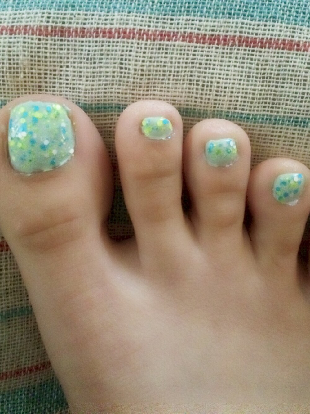 パステルグリーンの上にフレークネイルグリッター ソーダみたいな、しゅわしゅわな感じ。