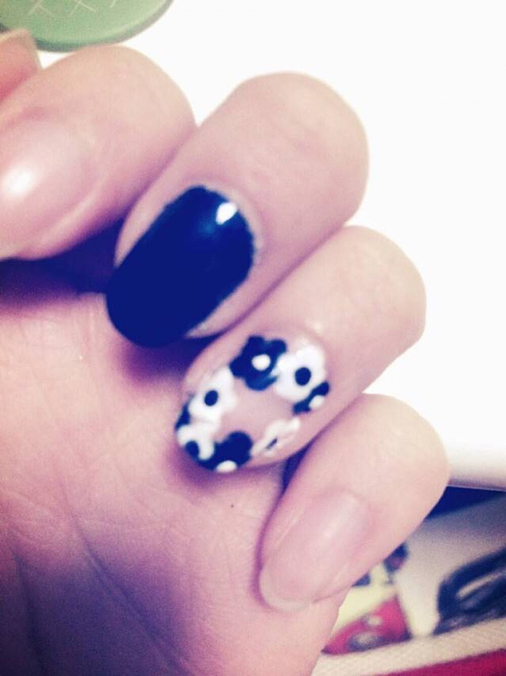 ネイビー×ホワイト 囲みフラワーネイル この2本だけ…すぐ落とします(;_;)