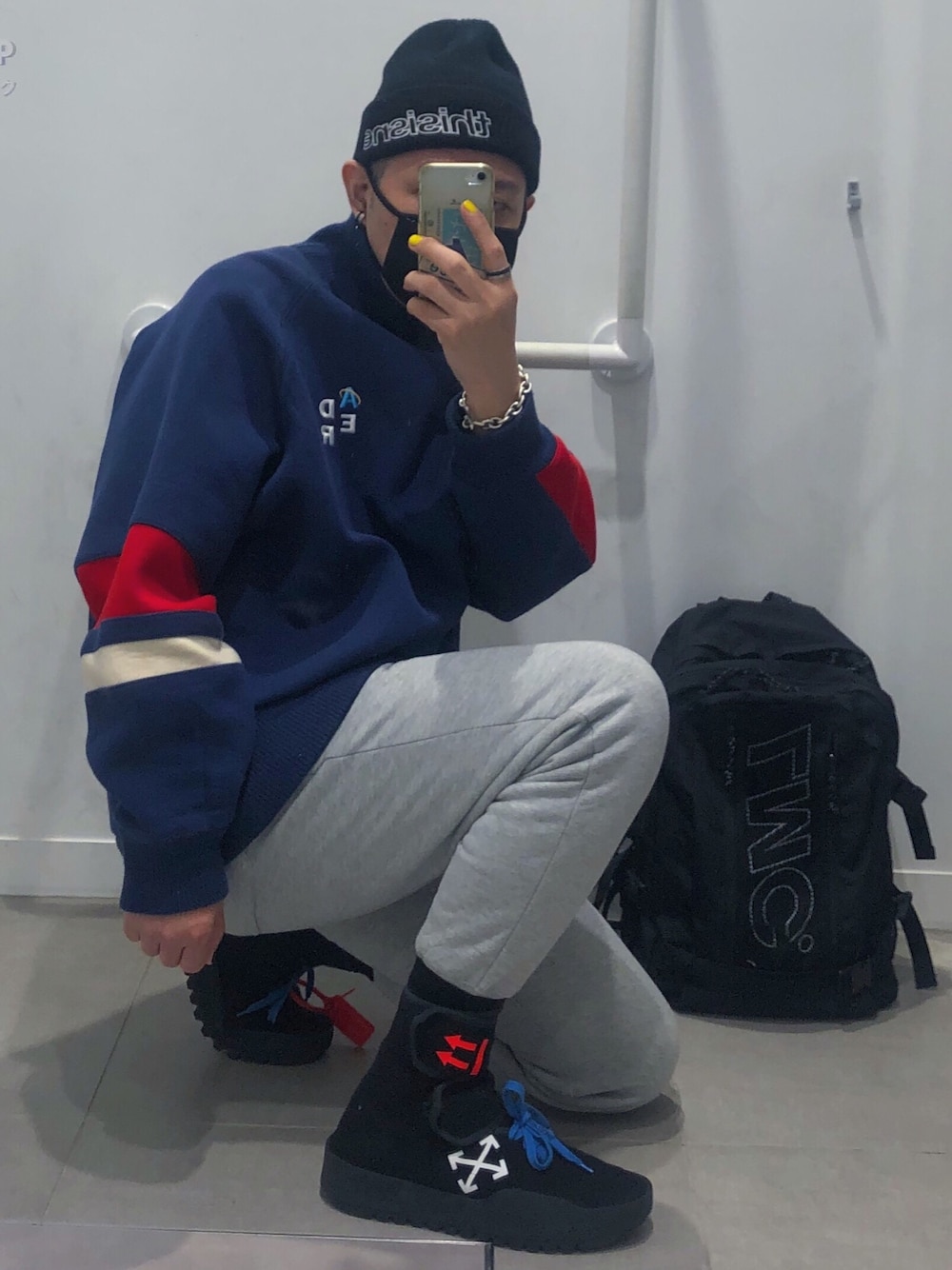 スウェットパンツの裾をソックスインするスタイルはもう数年やってます! 今日は分かりづらいですが、 OFF whiteのロングスニーカーに、ADER errorのハイソックスを合わせてます。 "見せる"為のロング〜ミドル丈のソックスはハイブランドから韓国系ブランド含めて80足近くは持ってます。 でも、気に入ってよく履くのって、そのうちの2割か3割程度です。 ★お知らせ★ 福岡発のユニセックスストリートブランドやってます! 所属ショップ欄からインスタグラム、ウェブストアーに是非見に来てください!