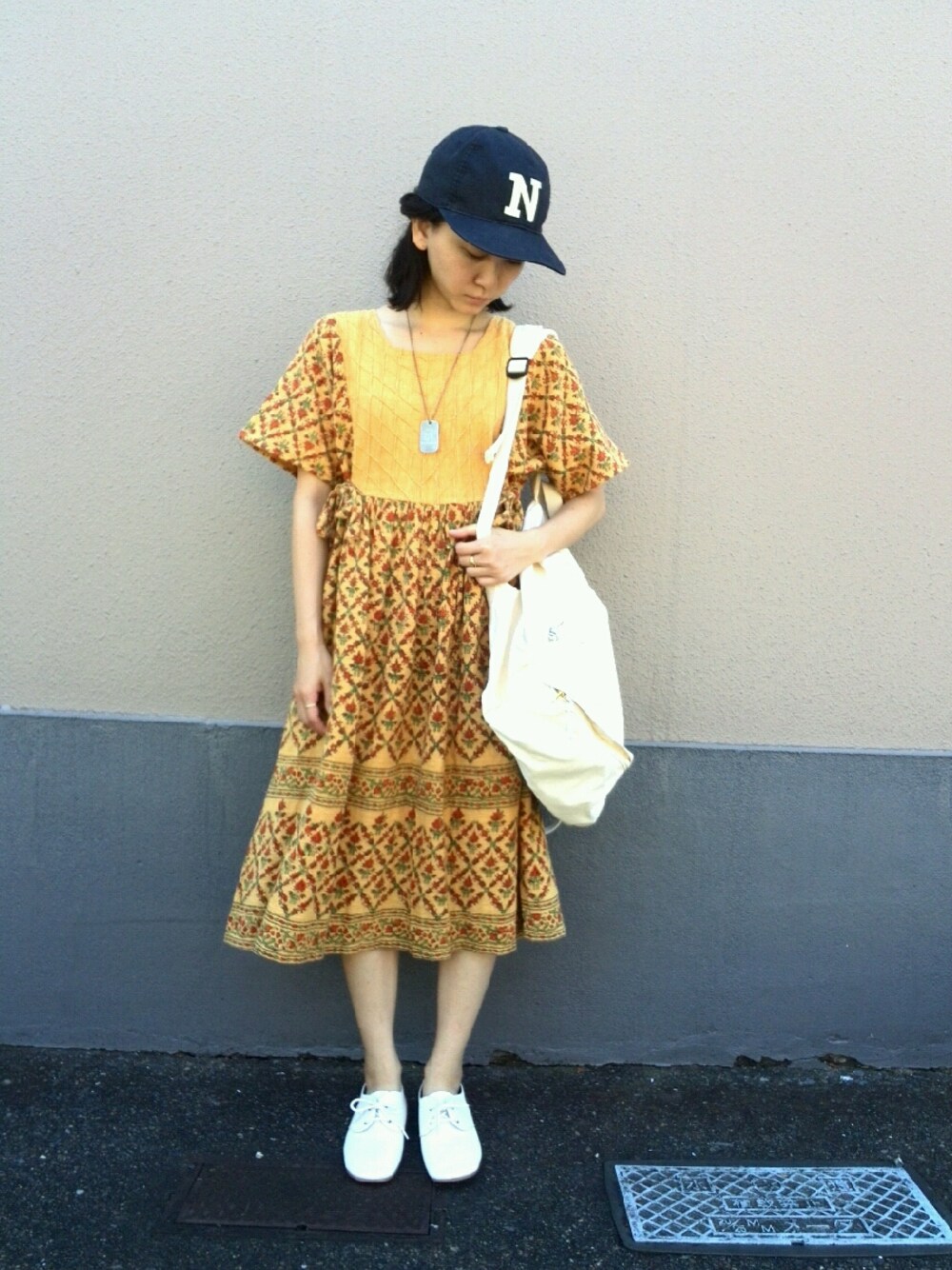 今日のワンピースと靴は初卸し✨ ワンピースは古着屋さんで700円でGET(笑) それ以外もフリマアプリでお安く買ったものばかり。 このワンピースはインド綿ですごく涼しい。 あと、見えないけど、ウエストラインの両脇が結べるようになっててシルエットが変えられるようになってるところがいい。 着るにはちょっぴり勇気いったけど(笑)、合わせる小物で結構馴染む!