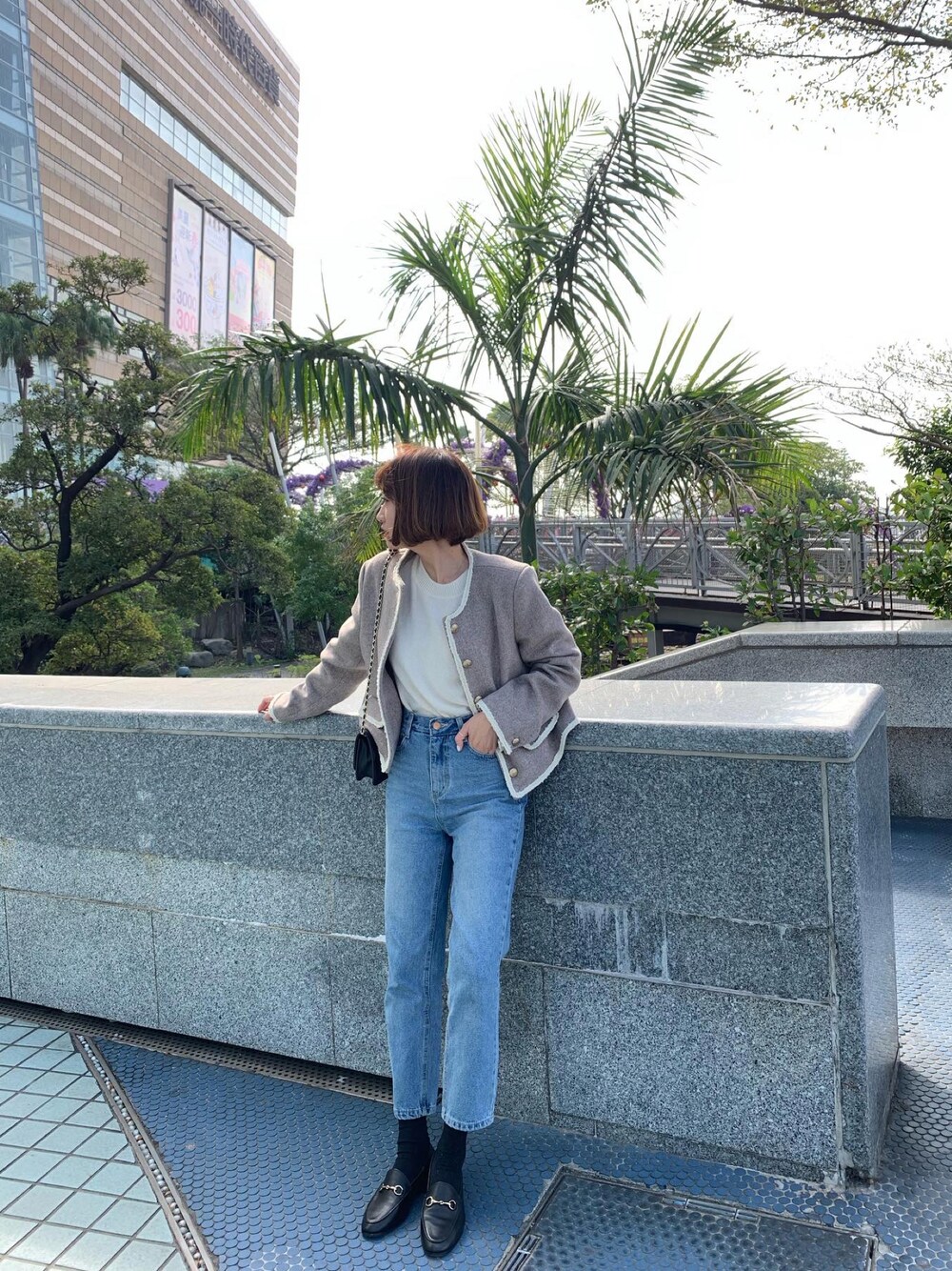ノーカラージャケット (グレー系)ノーカラージャケット