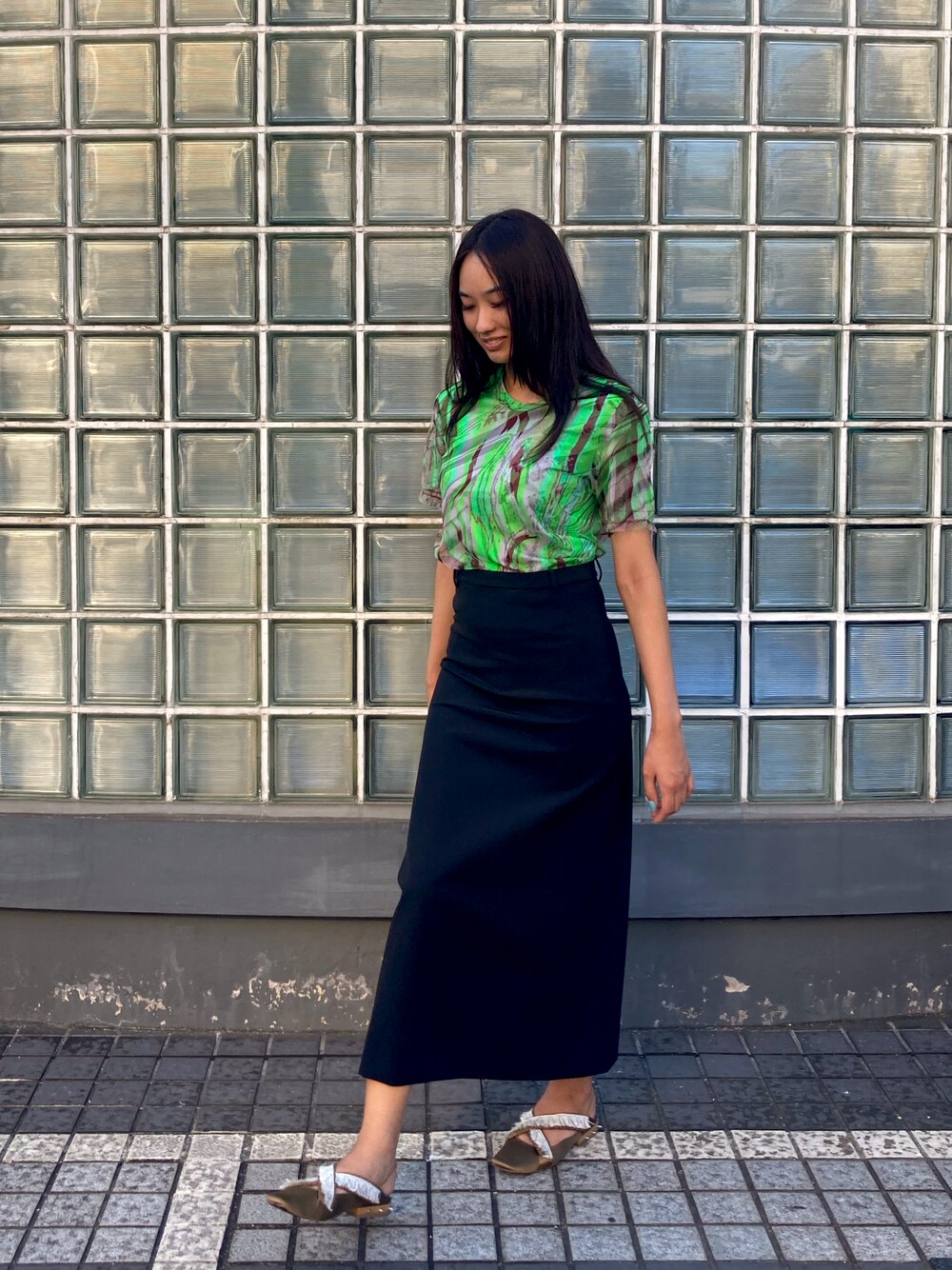 シルクオーガンジーの生地は高級感があり、見せすぎない程よい肌魅せ感がちょうどいい。 エジプト文化に着想を得たハイウエストのロングスカートは、縦長のラインでスラリと見せて、クールフェミニンな雰囲気を演出。 カットソーはZOZOTOWN 限定のアイテム。 着用:170センチ 38号 PR assistant : ATHICHAR