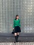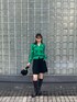 ドットのカットアウト加工が施されたカーディガンが主役のコーディネート。 鮮やかなグリーンのカーデに、ブラックカラーのJNBY秋冬新作アイテムを合わせて個性的でモードなスタイルに。🟢⚫️ 着用 : 172cm 38号 PR assistant : MIREI
