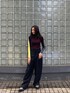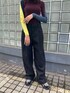 さまざまなカラーをミックスしたセーターは袖のイエローとグレーの配色が目と引きます。くすんだ色合いがレトロな雰囲気。 ブラックパンツは手触りが柔らかく通気性があり、ユニセックスで着用ができます。 着用:170センチ 38号 PR Assistant: Athichar