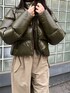 ショートダウンジャケットはふんわり柔らかく、とても軽いので、リラックスして着用できます。 ミリタリー風パンツでクールなスタイリングに。 着用:170センチ 38号 PR assistant: ATHICHAR