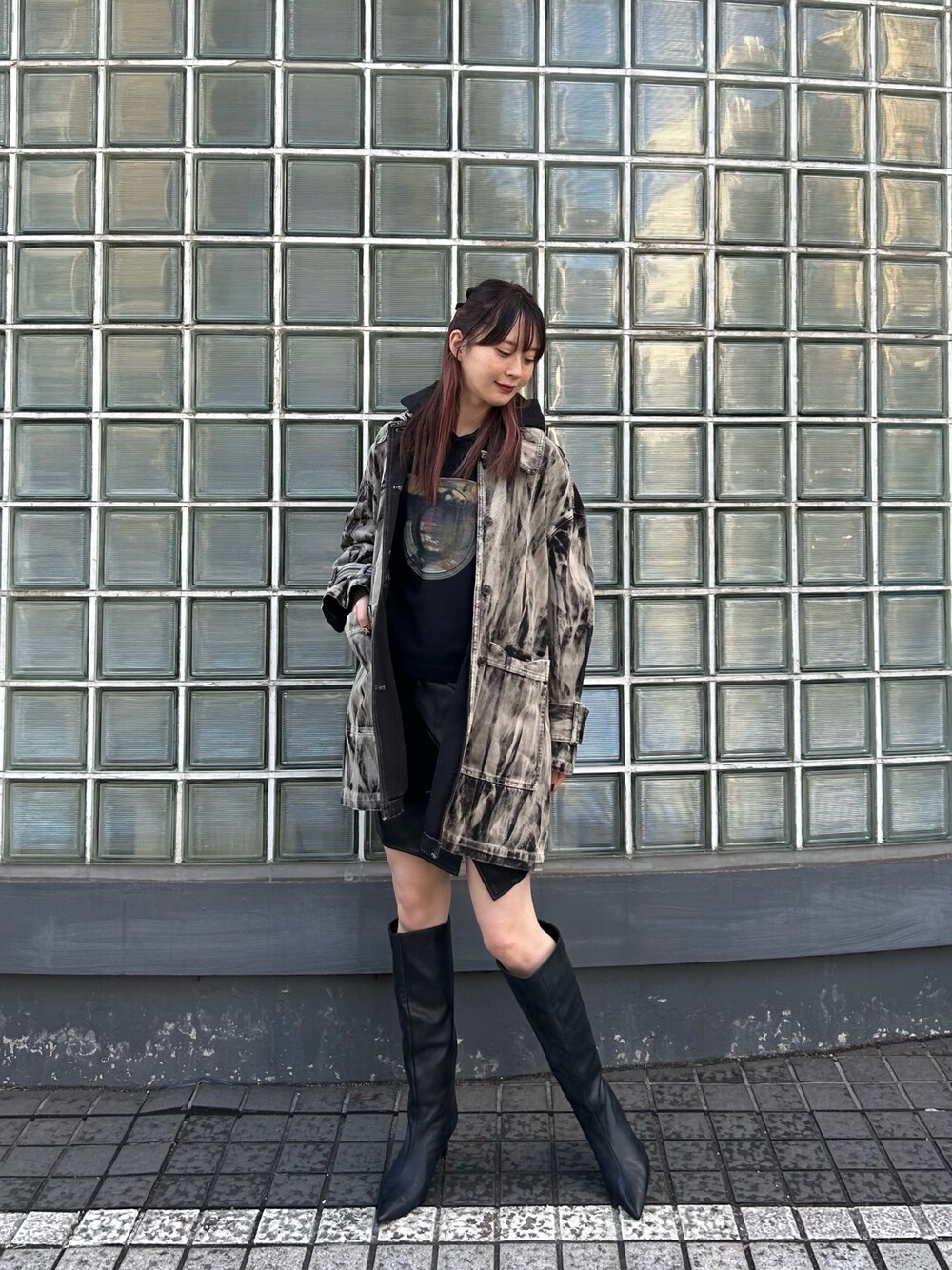 「JNBY×LESS」コーデ オーバーサイズのジャケットに、フーディを合わせてストリートライクに。 レザーのミニスカートとロングブーツで甘辛MIXなコーディネート。 着用 172cm 38号 PR assistant : MIREI