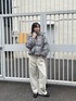 ブルー系のパステルカラーのアイテムを使って冬コーデ❄️ 花柄のダウンはゆとりのあるショート丈でバランス良く着こなせます。 着用 : 172cm 38号 PR assistant : MIREI