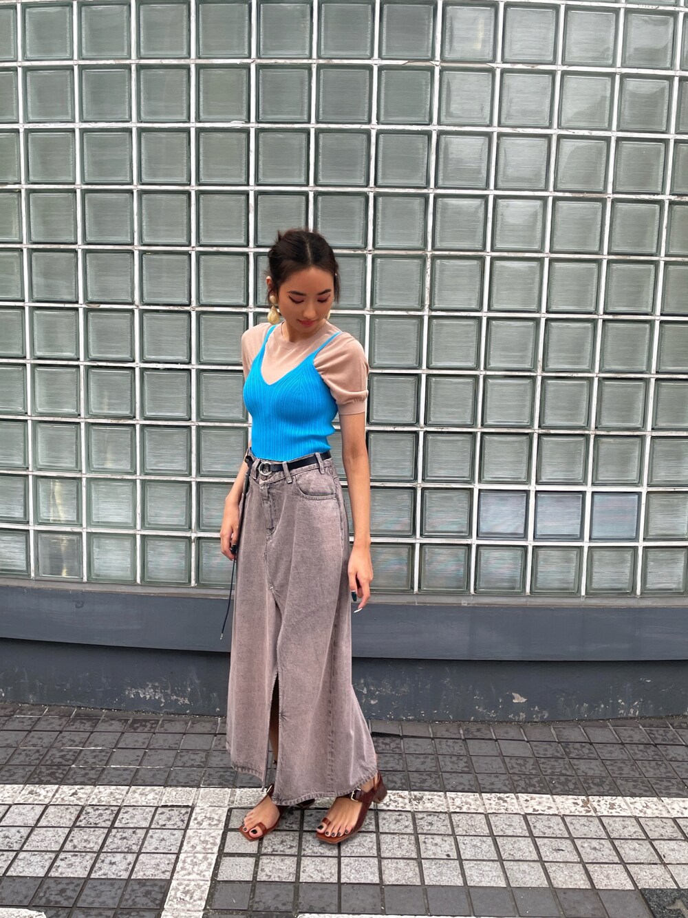 夏コーデにオススメのキャミソール。体のラインを美しく見せてくれるシルエットで、デニムスカートと合わせるとしゃれ感が漂います。 着用:170センチ 38号 PR ASSISTANT: ATHICHAR