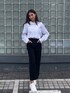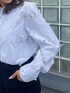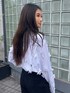 フラワーモチーフドカットのシャツ 。シンプルなデザインの中にも、華やかさが漂う1枚。パンツと合わせてオフィスシーンに活躍。 着用:170センチ 38号 PR:ATHICHAR