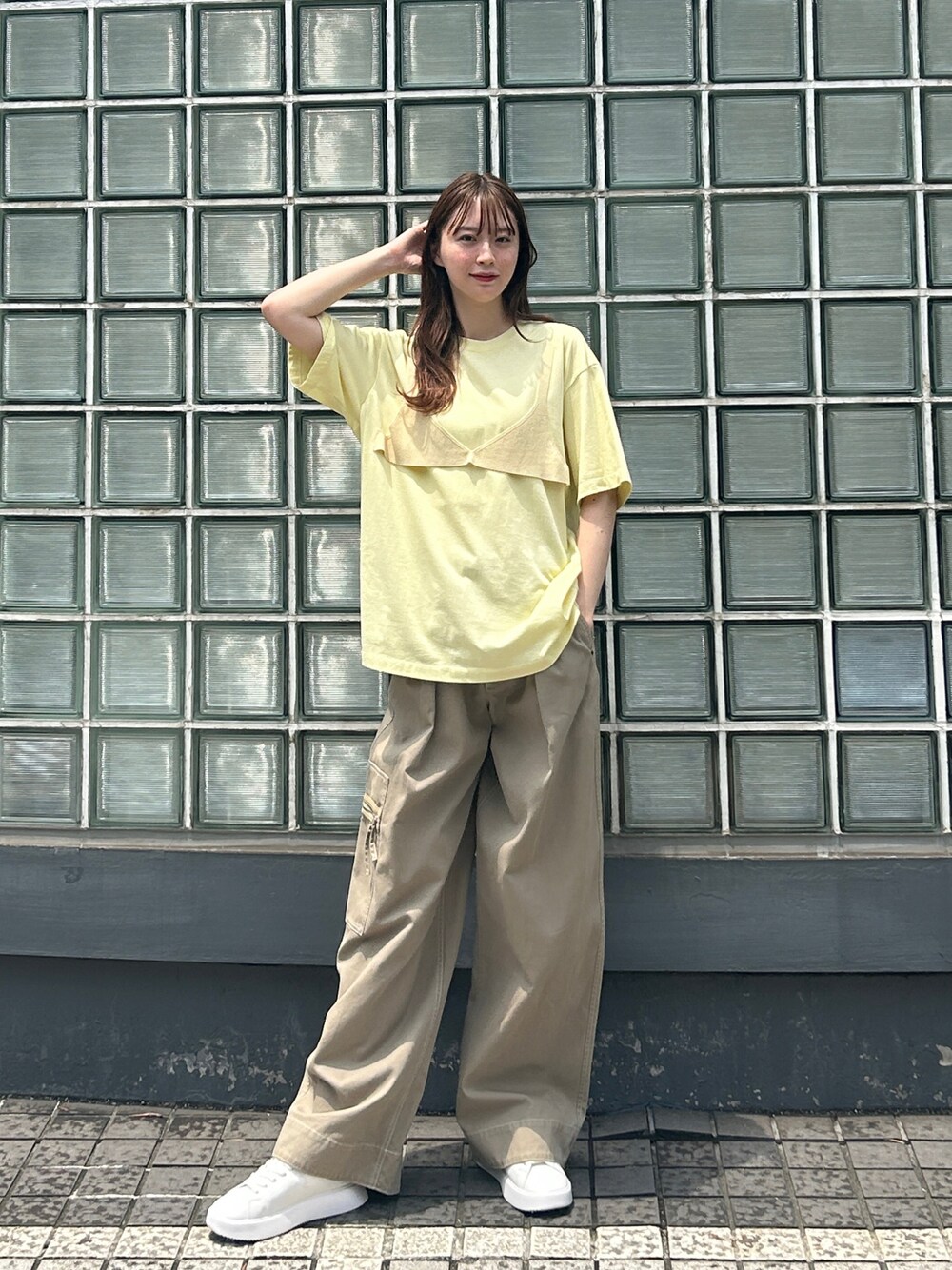ビスチェをレイヤードしたようなデザインのTシャツは1枚でおしゃれに着こなせます。 着用 172cm 38号