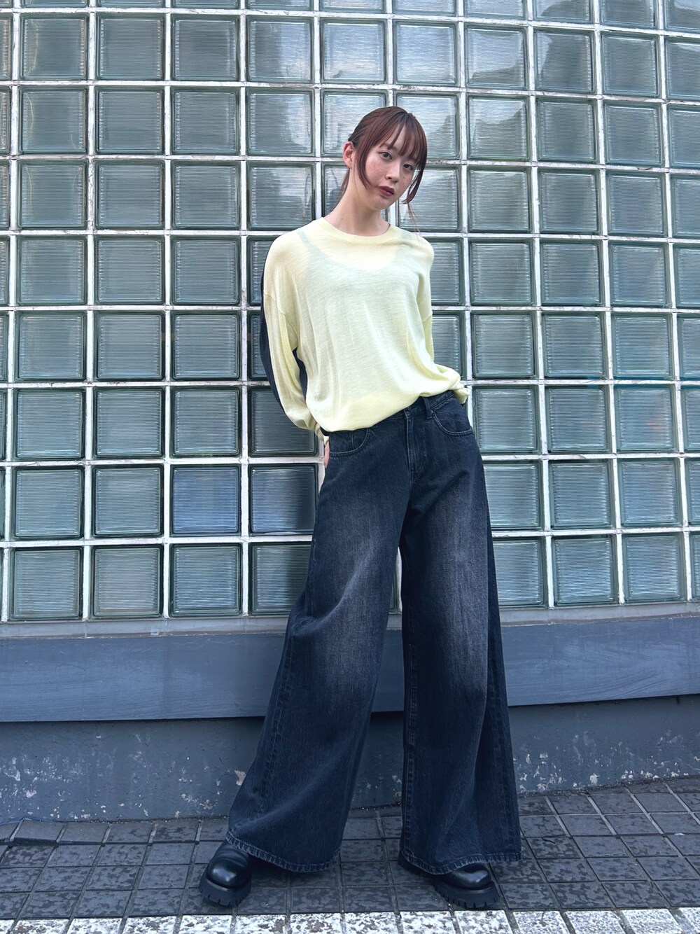 イエローとグレーの配色が特徴的なJNBYの秋の新作ニット。 広がりが綺麗なデニムパンツと合わせるとバランス良く着こなせます。💫 着用 :173cm 38号