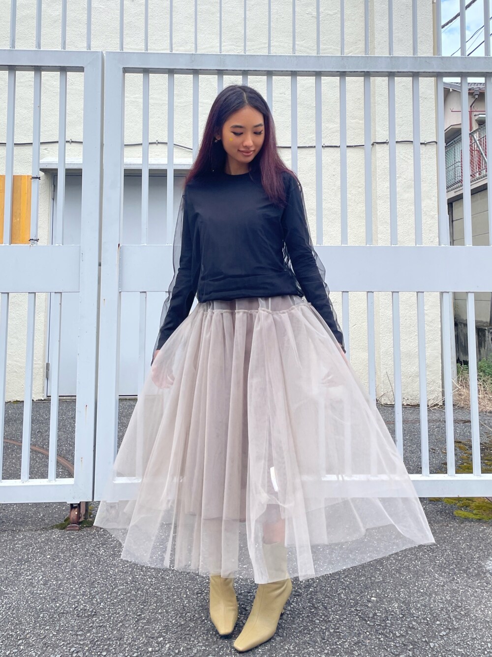 micpr staff(MIC PRESS ROOM)のスカート「Light & Sheer Tulle Skirt」を使ったコーディネート