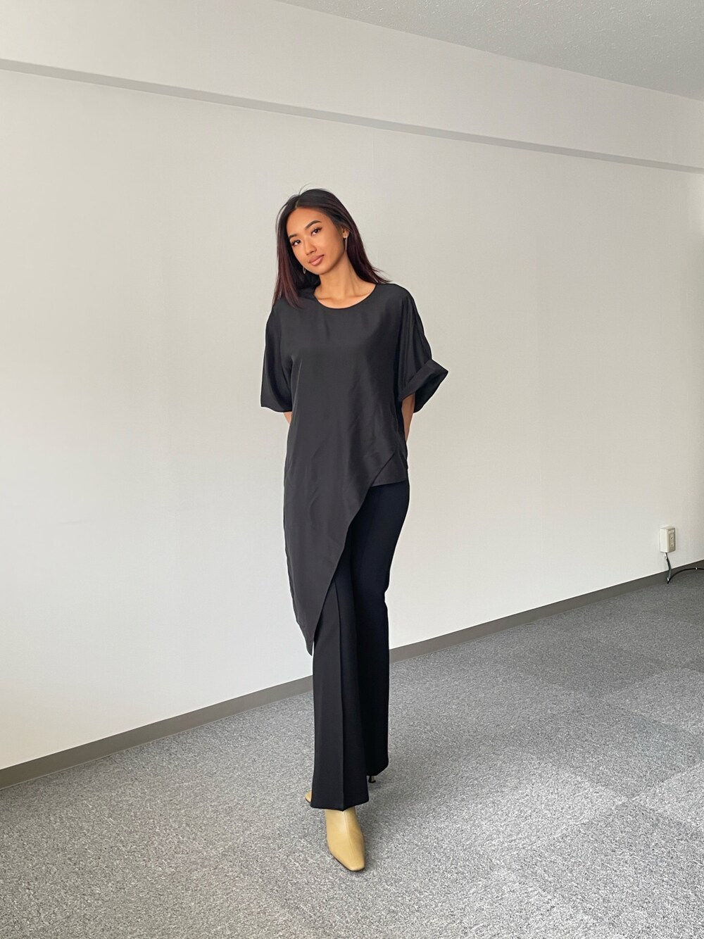 micpr staff(MIC PRESS ROOM)のシャツ/ブラウス「Elegant Silk Asymmetrical Top」を使ったコーディネート
