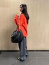Vネックカーディガンは、とても柔らかく、さまざまなシーンで活躍。バナナシルエットのウールパンツ合わせてリラックスな印象に。 着用:170センチ 38号 PR ASSISTANT:170センチ