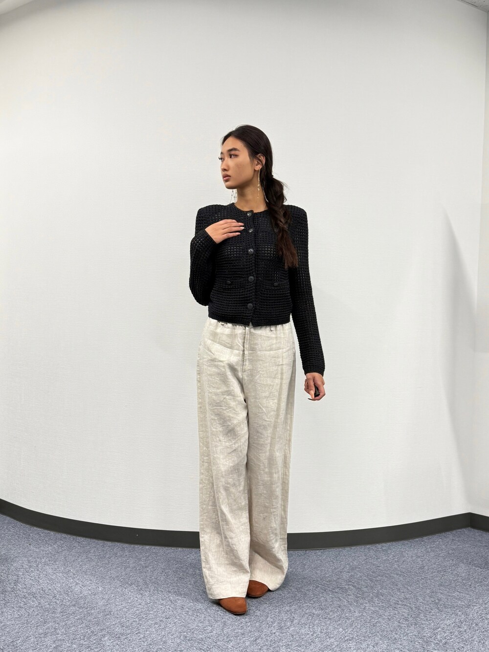 レトロな雰囲気が魅力のニットジャケットは、カジュアルからきれいめまで幅広いシーンで活躍。 カジュアルパンツで品のある着こなしを叶えます。 着用:170センチ 38号 PR ASSISTANT:ATHICHAR