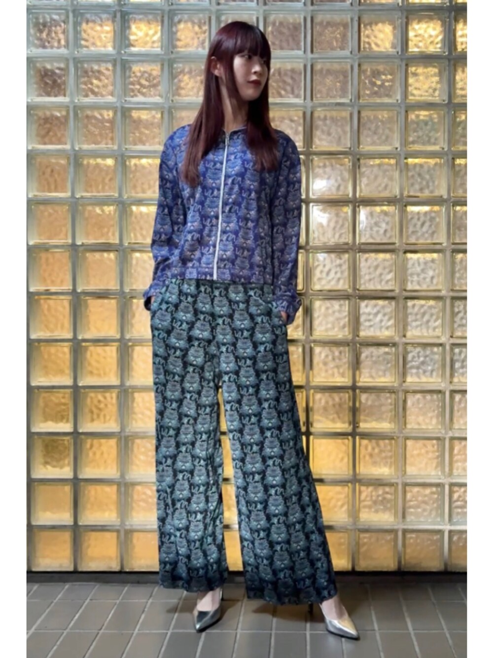 サイケデリックなドラゴンモチーフを並べたネットプリントのフーディーとワイドシルエットのパンツ。 個性的なデザインが目を惹きます。 PR assistant 着用 172cm 38号