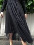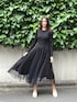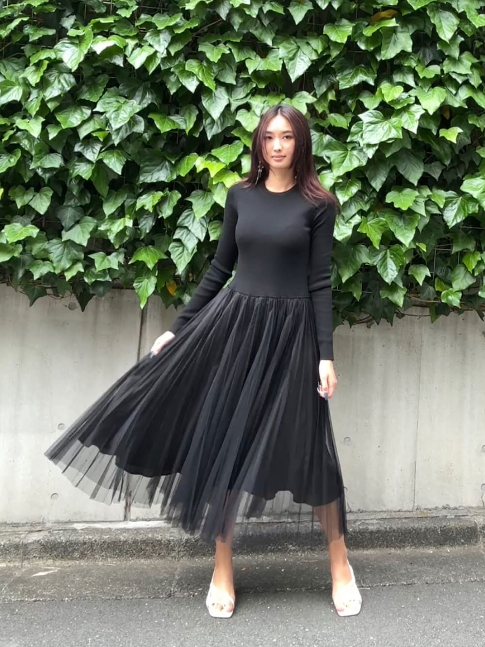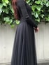 スリムフィットのウールニットとふんわり華やかなチュールを組み合わせたロングワンピースドレス。1枚だけエレガントな印象を醸し出します。 着用:170センチ 38号 PR ASSISTANT: ATHICHAR