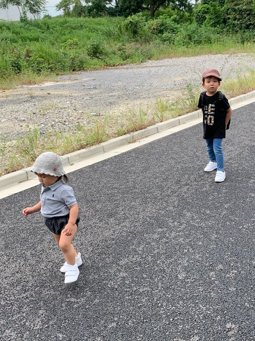 お散歩行ったよ! 娘はハイウエストw かぼパン大好き💕