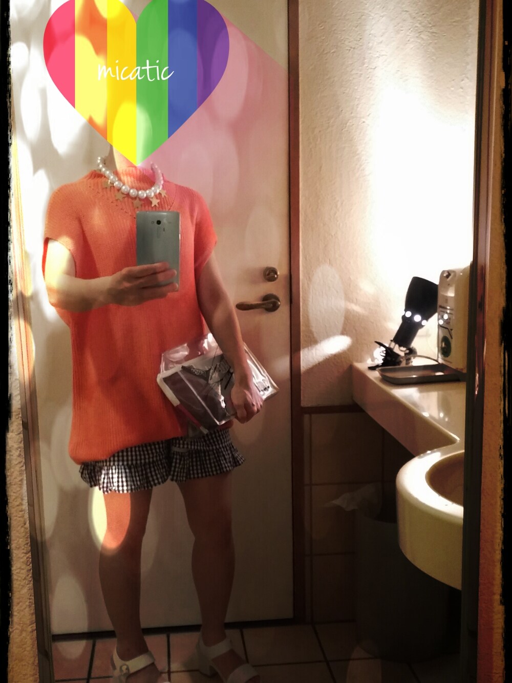 happyorangeのsummerニット👕 からの、ギンガムチェック👖 この夏はホワイトカラーは、外させない😼 目汚し失礼致しました🌛
