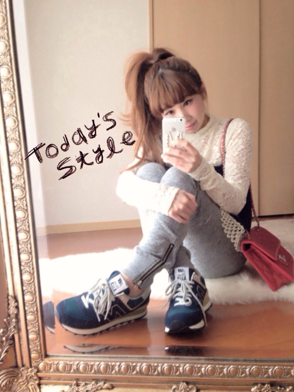 スウェットパンツにスニーカーで楽チンコーデ♡