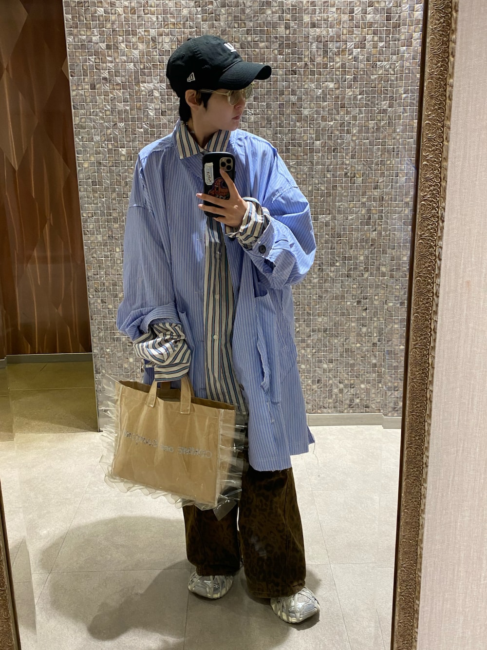 シャツ×シャツ ストライプ×レオパード🐆 メンズライクなスタイリングにしました!