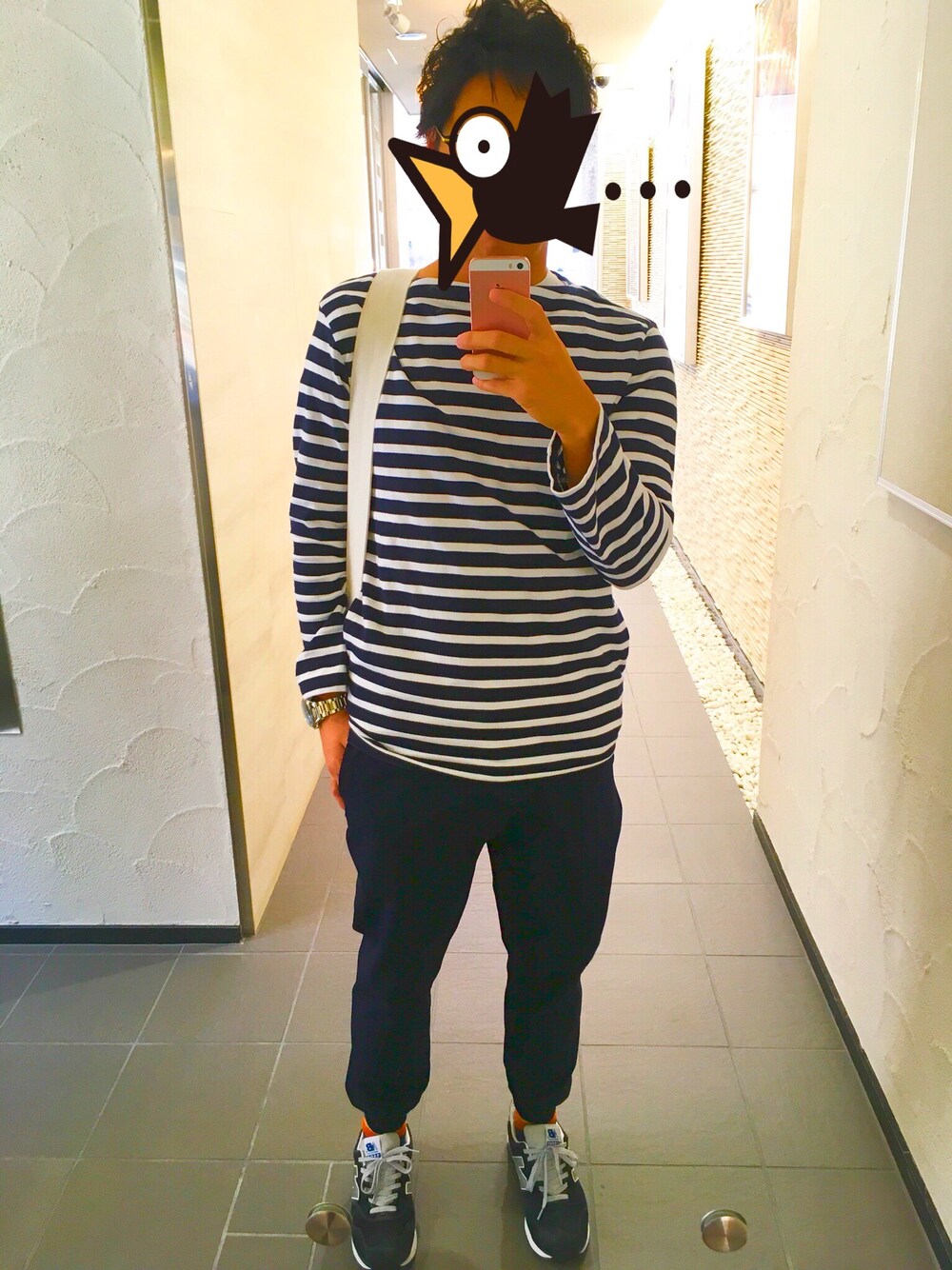 ネイビーと白のツートーンコーデ。 ようやく秋らしい気温になってきたのでウキウキ(^ω^) 靴下からちらっと見えるオレンジをちょっとしたアクセントに。