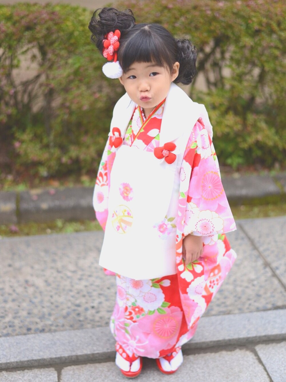 七五三♡ 早生まれのおチビなので、1年遅らせました💕 スタジオ撮影はやめて、着付けと髪は母が頑張りました💪🏻 📸はお友達にお願いしたけど、いいカメラ欲しくなった…😂 見ていただきありがとうございます😊