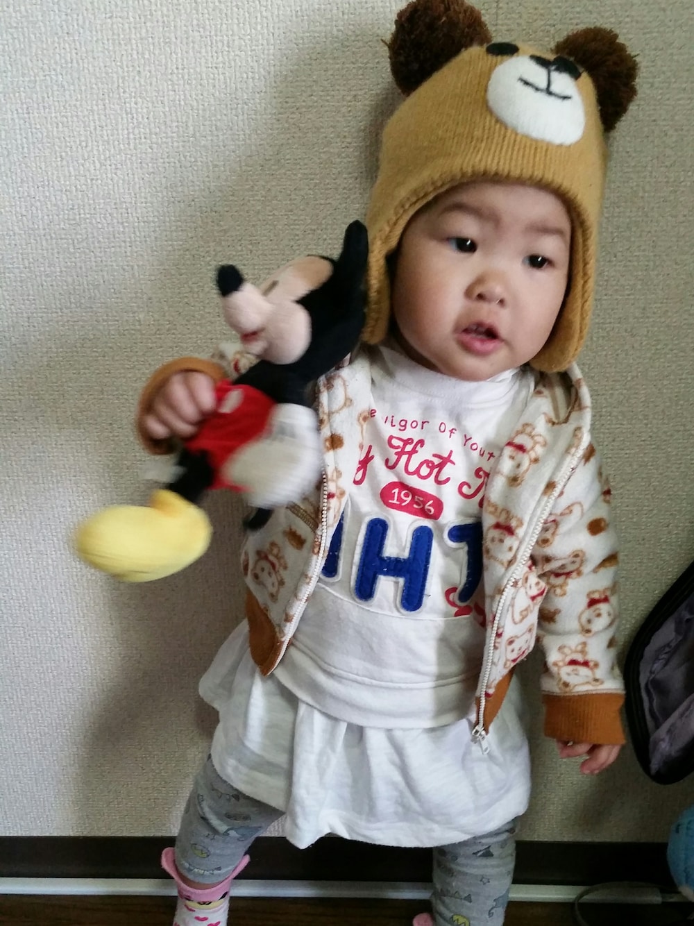 私も息子も帽子好きなのに、妹さんはなぜか帽子が嫌いですぐ脱ぎ捨てる(´・_・`) 私が帽子をかぶせたことが気に入らなくてイラッとしたのか、帽子を脱ぎ捨て、そのあとギューしてたミッキーをも投げ捨てた、 なんだ、反抗期か(笑)