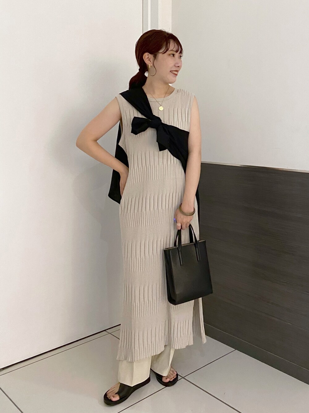 hitomi(LOWRYS FARM イオンモール大和郡山)のワンピース「ランダムテレコノースリーブワンピース 945205」を使ったコーディネート