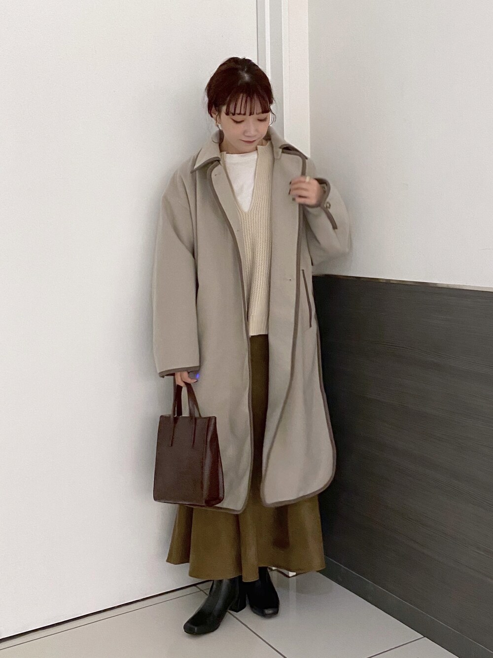 🔖instagram @micha02__ 全体的に淡色で合わせて秋冬コーデに🍂 パイピングコートは襟取って使っていただけます♪ ✔️staffboard更新してます! プロフィールから飛べるのでご覧ください!