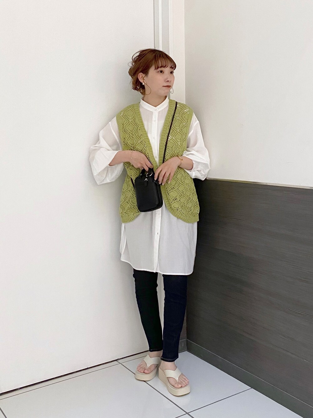 🔖instagram @micha02__ シンプルなコーデにもベストをプラスするだけで 一気にオシャレに見えますよ🥺🥺 マクラメベストなのでちょっと個性的なのも◎