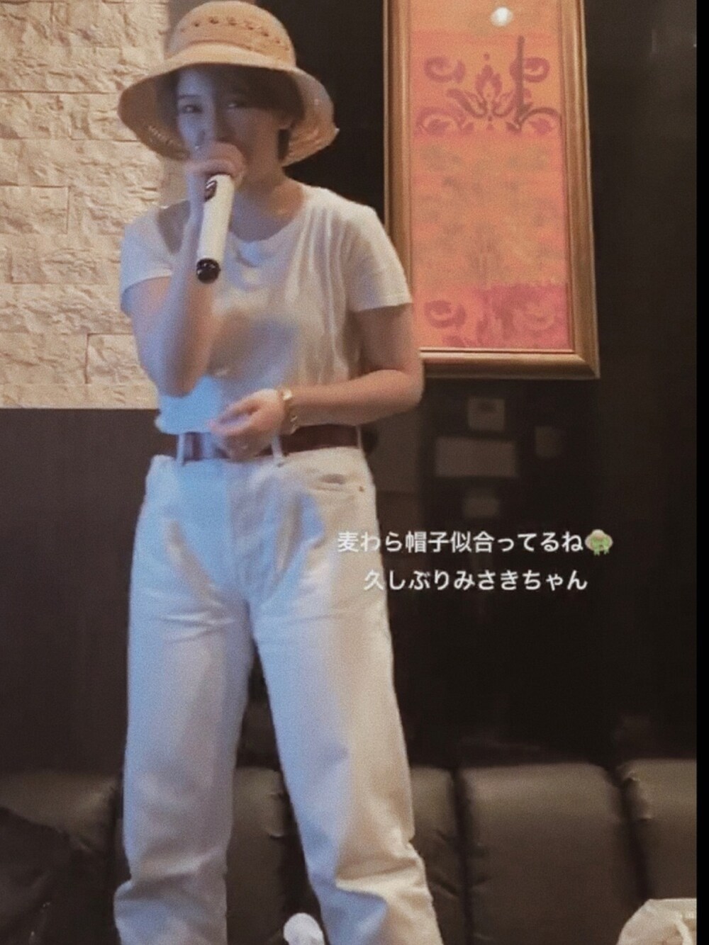 古着屋さんで買ったメンズのパンツ🩳🤍 帽子は友達が被ってたものをふざけて借りました🤝