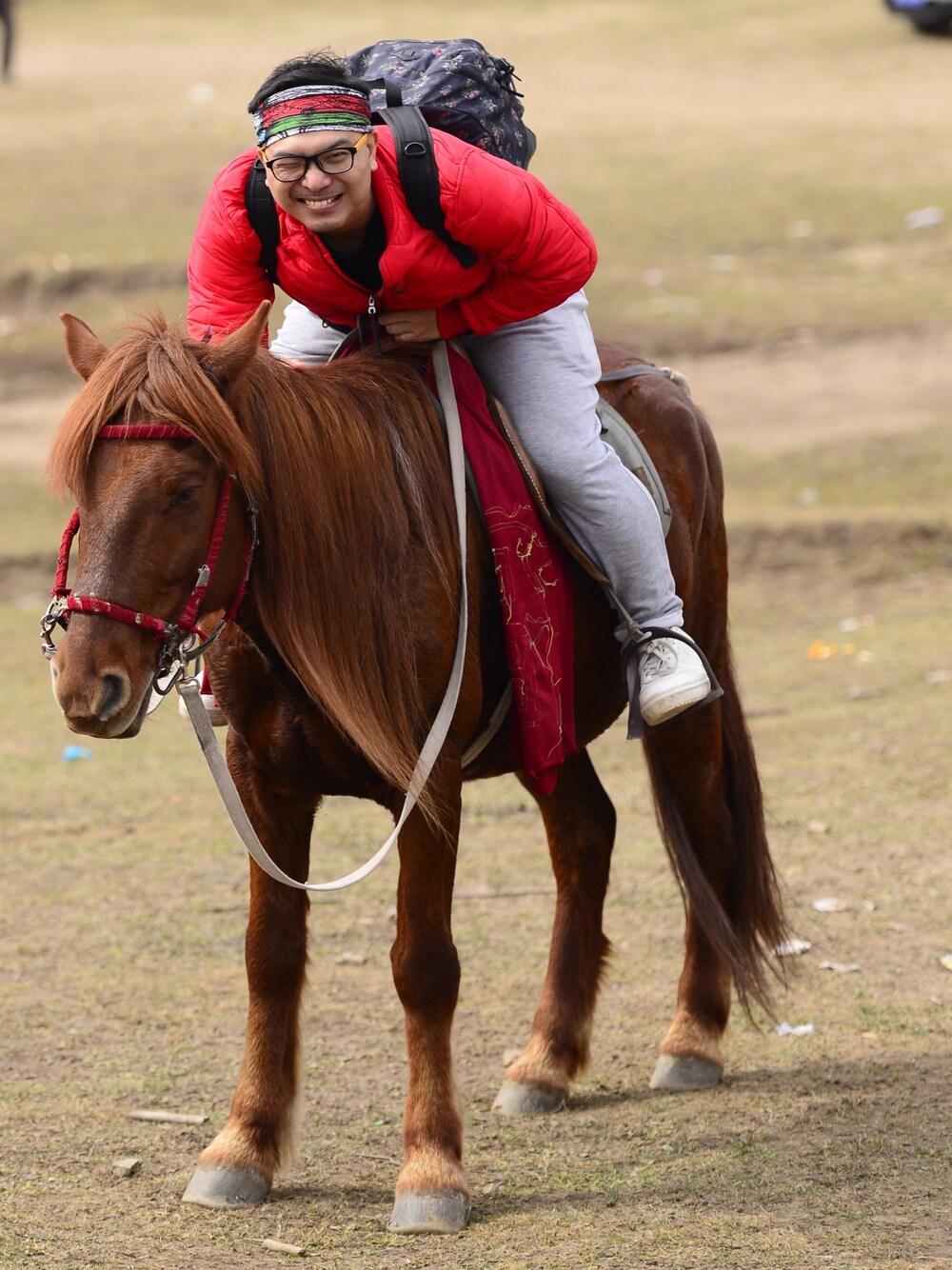 レッド系のチェスターコートを着用したメンズの秋コーディネートの1枚目の写真