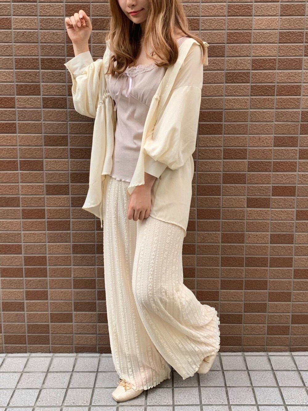 ちゃきのTシャツ/カットソー「フロントリボンレースキャミソール」を使ったコーディネート