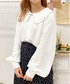 ☁ブルーニット×襟ブラウスコーデ☁ 初ZOZOTOWNでお買い物しました♪ どちらもフリーサイズなので少し大きめですがゆるっと着れてお気に入り︎☺︎ 中のブラウスは他のスウェットなどと合わせても可愛く着れました♡♡
