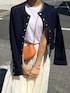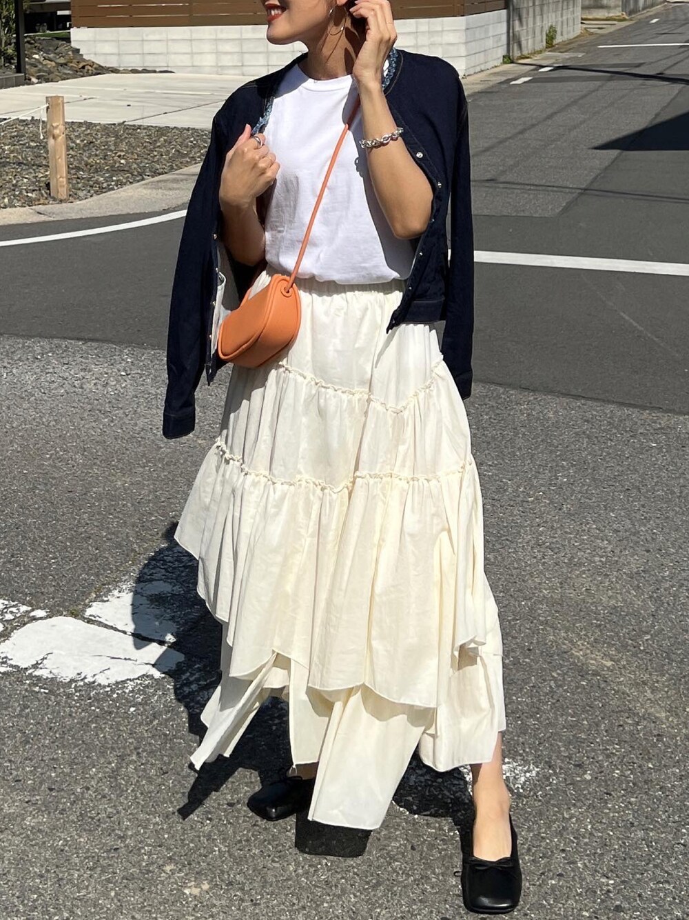 MIHOのデニムジャケット「ドット釦アクセントカラーデニムジャケット」を使ったコーディネート