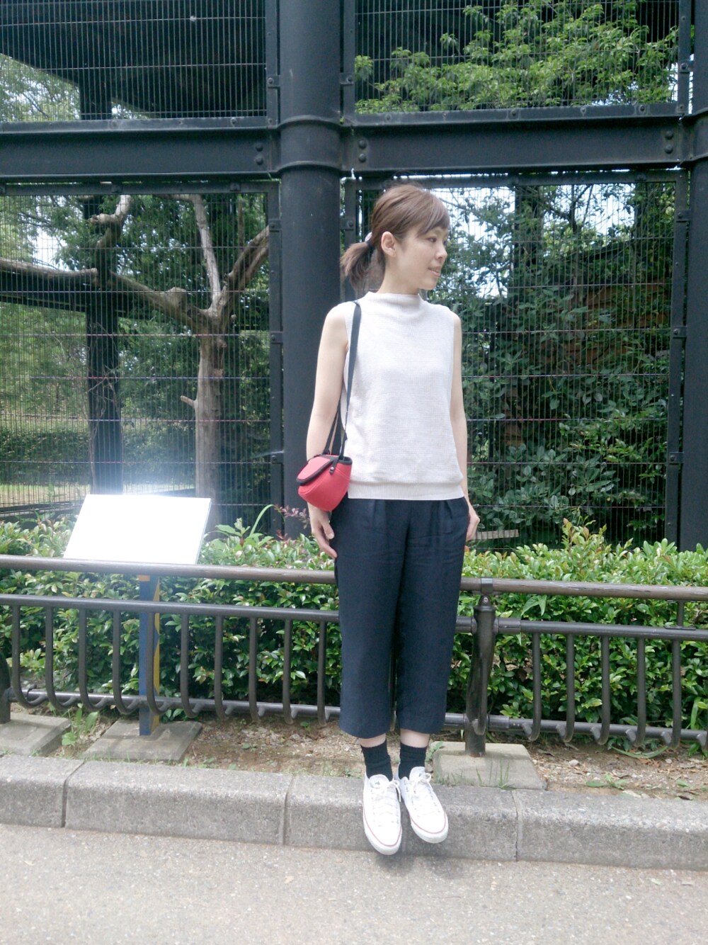 こないだ、動物園に行った時のコーデです♪ 首つまりニット、 コットン100%でとても着やすい♪ 赤いのはカメラです! このネイビーパンツ、履きすぎて定番化しております…(*^^*) 今日、整体に行ったんですが、うつぶせになってる時間が長くて 見事にほっぺにタオルの跡が(>.<) なかなか消えないんだから勘弁してほしー(´・c_・`)