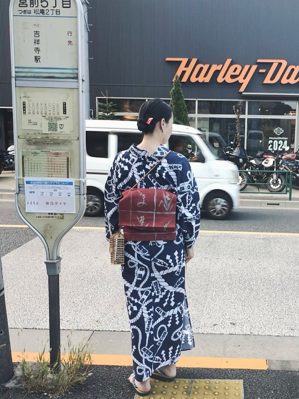 少し涼しい気がしたので帯をお太鼓結びしました。