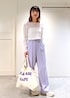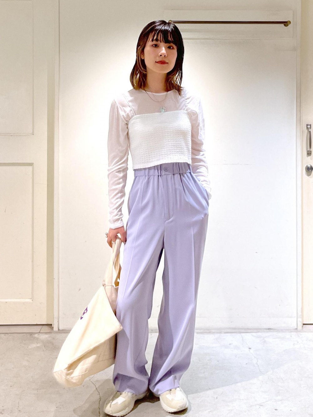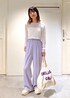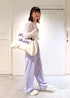 トートバッグ: フリーサイズ 【BAGMATI】SBX54080 #54 ¥9,900- アクセサリー: 私物 シアートップス×ラベンダーパンツで 爽やかに春らしいスタイリングです♡ シアートップスにはベアトップ(ビスチェ)を 合わせたくなります。。。 横長の大きめサイズのトートバッグは たくさん荷物が入って使えそう◎ ロゴのパープルをパンツとリンクさせました。