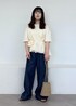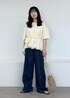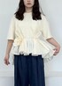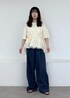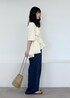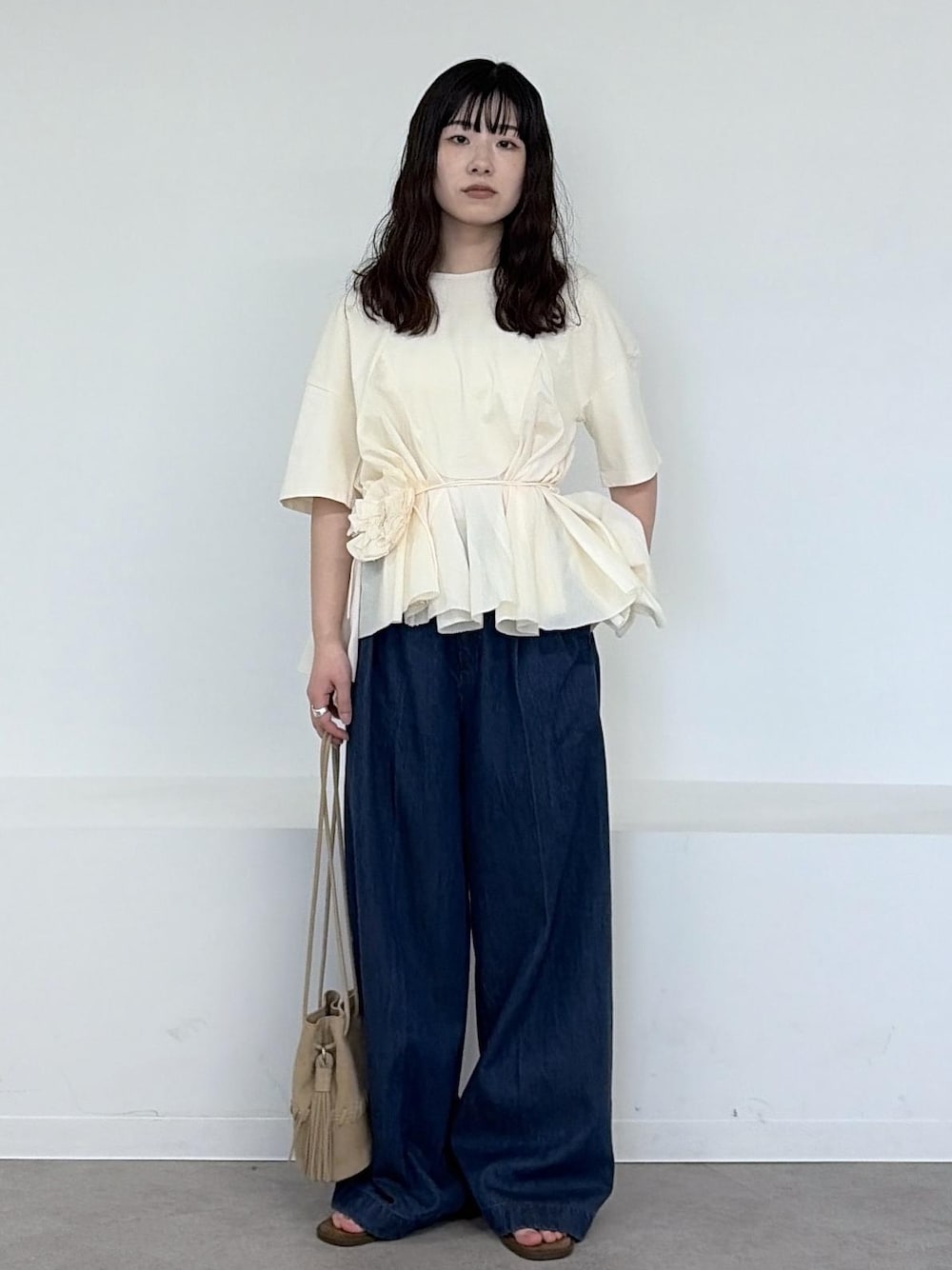 特徴的なトップスをメインに デニムでシンプルコーデ。 ウエストのコサージュ付き紐は、 首元や手元、ベルト代わりなどアレンジ可能です。 トップス: サンプル