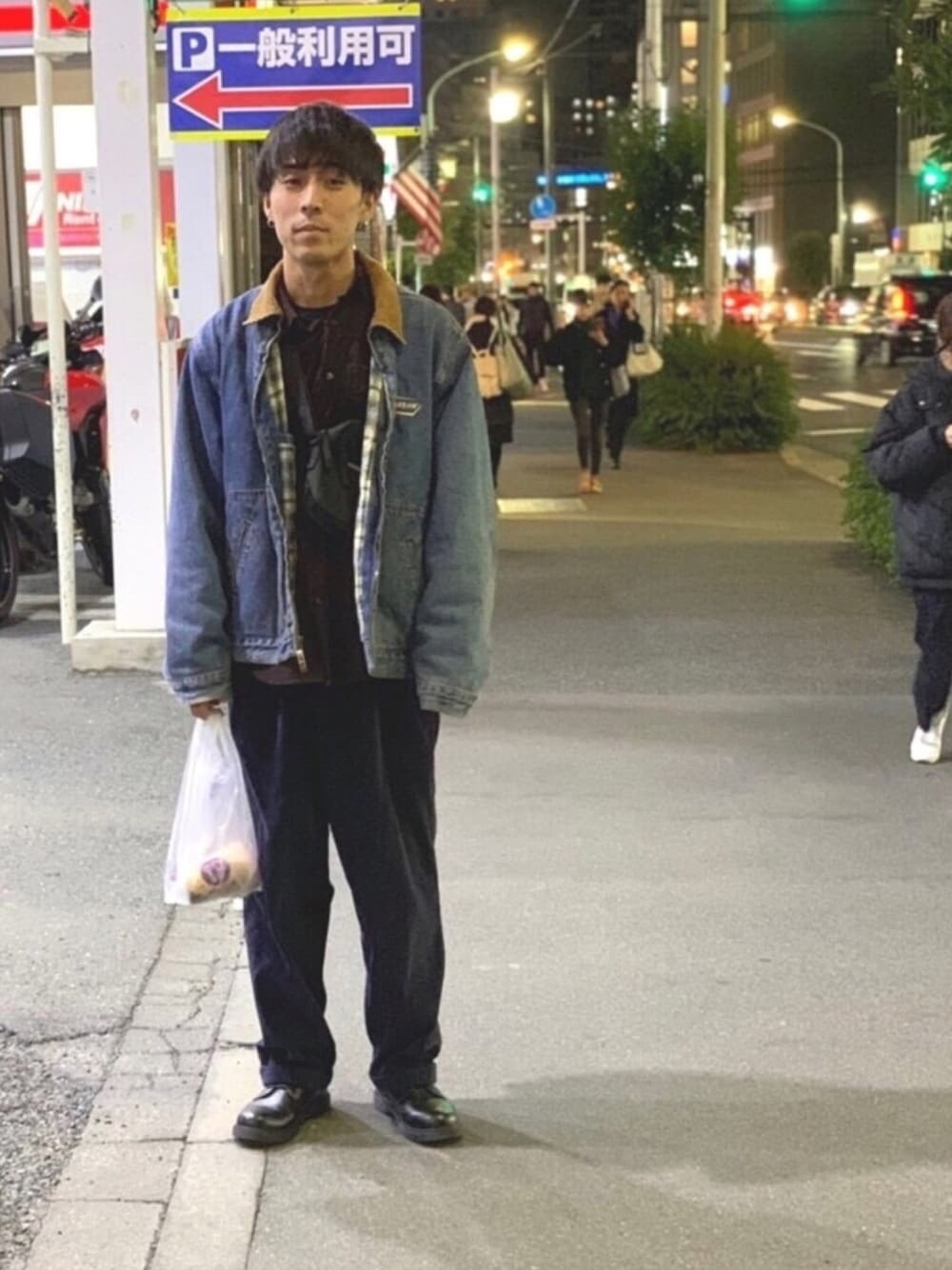 デニムジャケットの襟のコーデュロイとパンツのコーデュロイが個人的にポイントです。 デニムジャケット:700 シャツ:1500 コーデュロイパンツ:700 ボディバック:雑誌の付録 ピアス:800 革靴:4000 茶タイムパールミルクティー:500