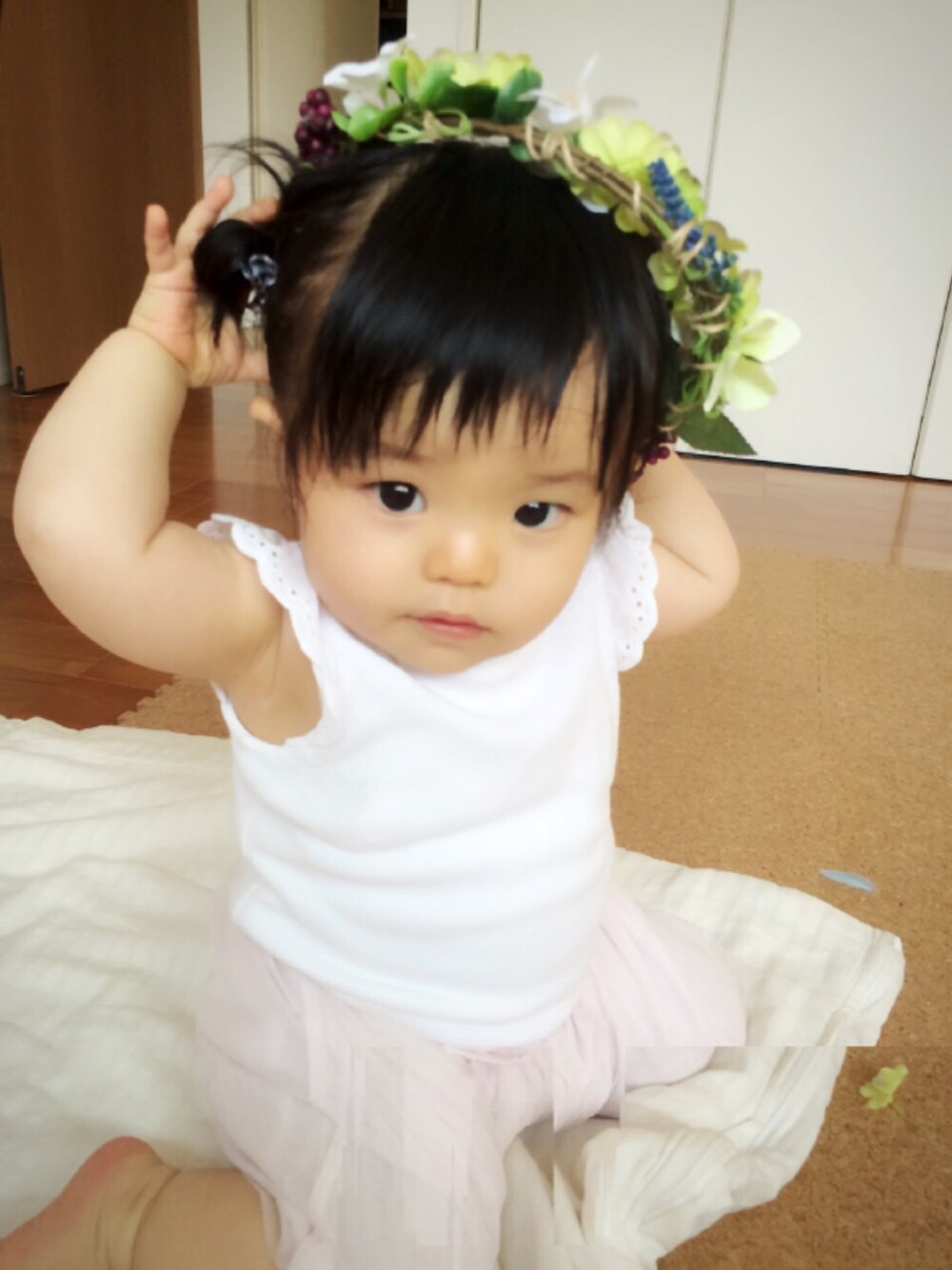 1歳の誕生日🎂お友達のお家でお祝い♡友達お手製のナチュラルかんむり被って…すぐ取っちゃう(^^;