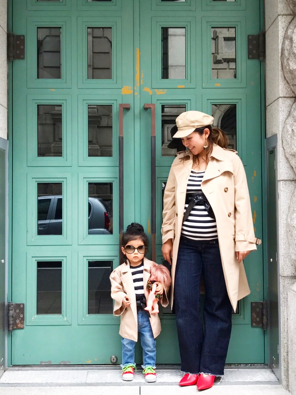 この日はお友達みんなで3つ子コーデしたよ💓 ボーダー×デニム×トレンチコート×マリンキャップ❤️ 大人の3つ子コーデは目立つね🤣 Instagram➳marchin7