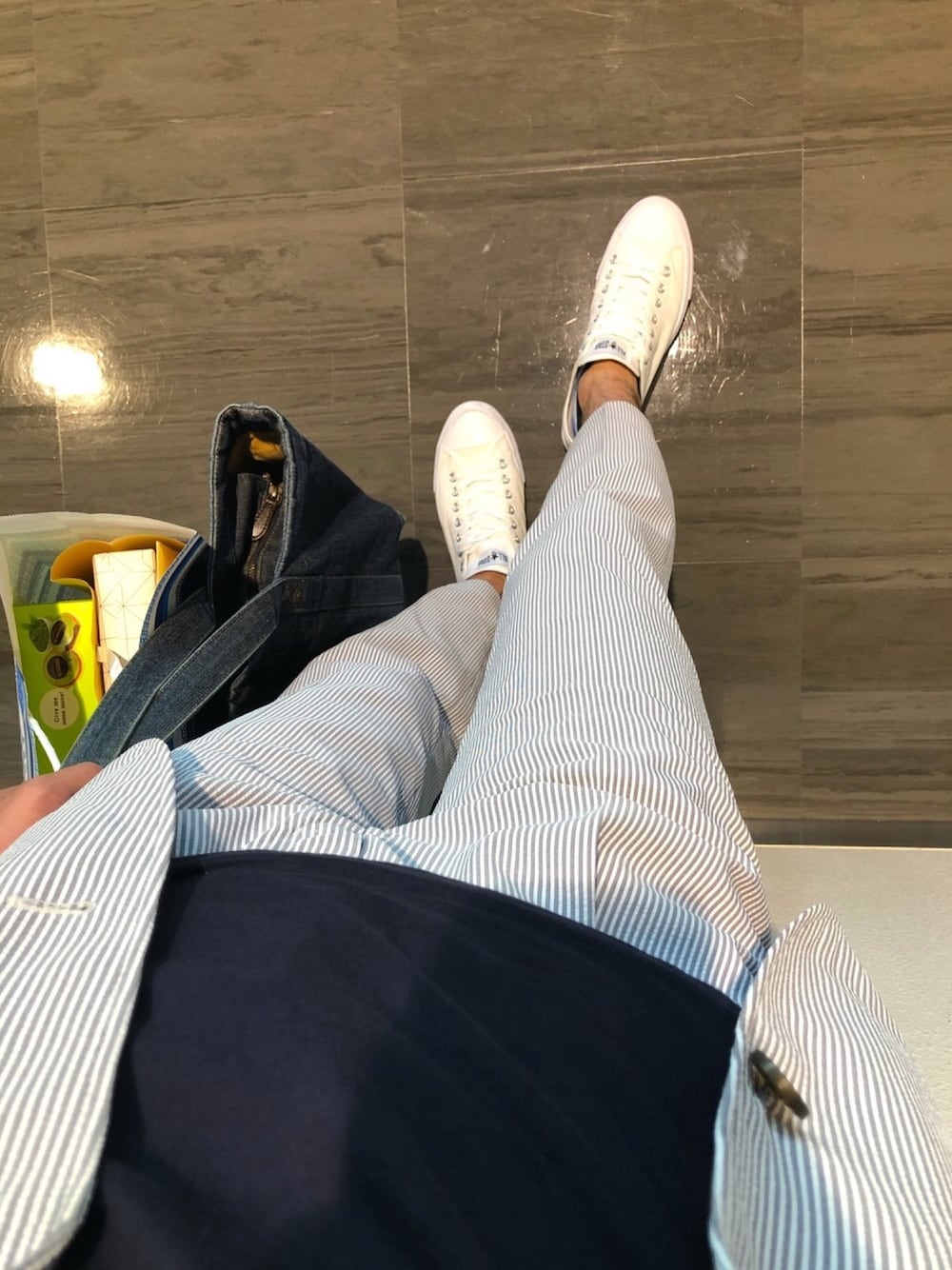 Yuheiのスラックス「ダメリーノ シアサッカーイージーパンツ【セットアップ対応】」を使ったコーディネート