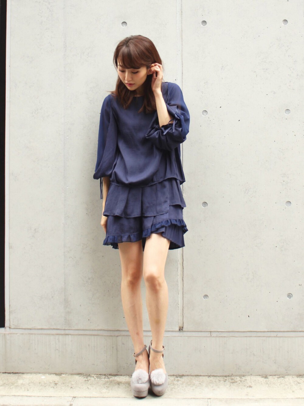 MICOAMERI 16AWcollection 落ち感あるオトナな雰囲気のセットアップ。 ボリュームある袖に、アシメトリーのボトムがポイントです。