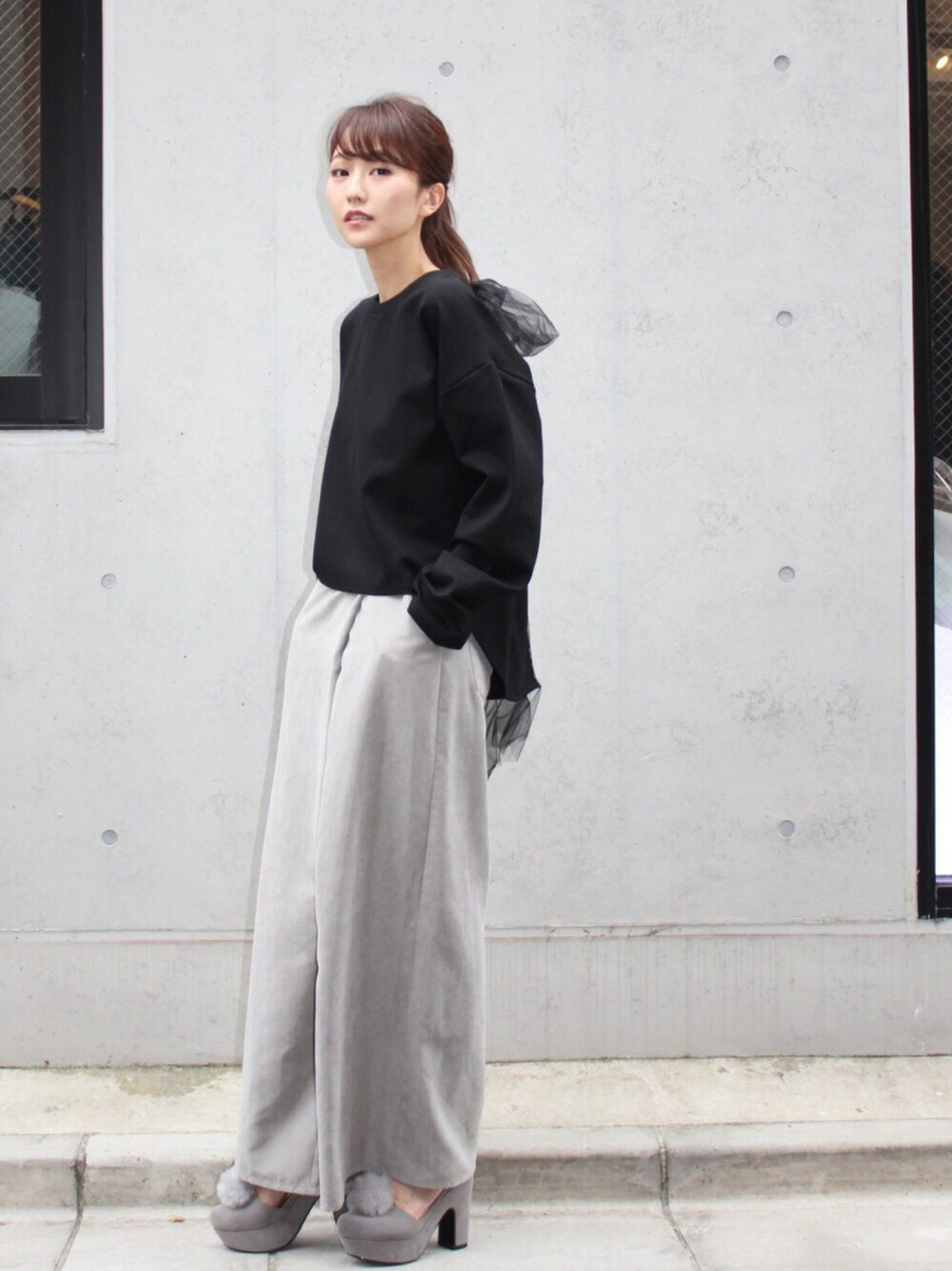 MICOAMERI 16AWcollection モノトーンのオトナカジュアルスタイル。ゆるっとしたシルエットのバックチュールロンteeは、この時期にぴったりのアイテムです。