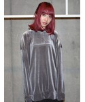 MICOAMERI 16AW collection 今の時期に1枚で使えるビックシルエットのプルオーバー。光沢あるベロアと、背中チュールの異素材MIXです。