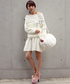 MICOAMERI 16AW collection ケーブル編みのオフショルニットと同じ編み地のスカートでセットアップスタイルに。 ゆるっとしたオフショルが、女性らしい華奢な印象に。